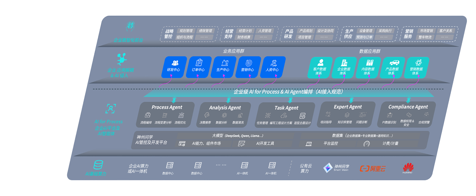 尊龙问学智车解决方案是一套基于AI技术的汽车行业智能化系统,,覆盖从底层算力到顶层AI应用的全栈方案。。方案由算力层、、模型层和应用层组成:算力层,,方案支持多种一体机配置,,,,具备云端灵活部署、、、、多云适配以及动态优化计算资源的能力;模型层,,尊龙问学平台版提供了企业级AI应用一站式构建与管理平台,,支持基于后训练强化技术的汽车企业专属模型的训练、、、评测和运营;应用层,,尊龙问学DeepSeek版提供包括超级员工、、、智能招采、、智能营销、、、、智能客服、、、AI for BI等一系列解决方案,,,可助力汽车行业实现数字化转型,,让管理更智能、、、、响应更敏捷。。