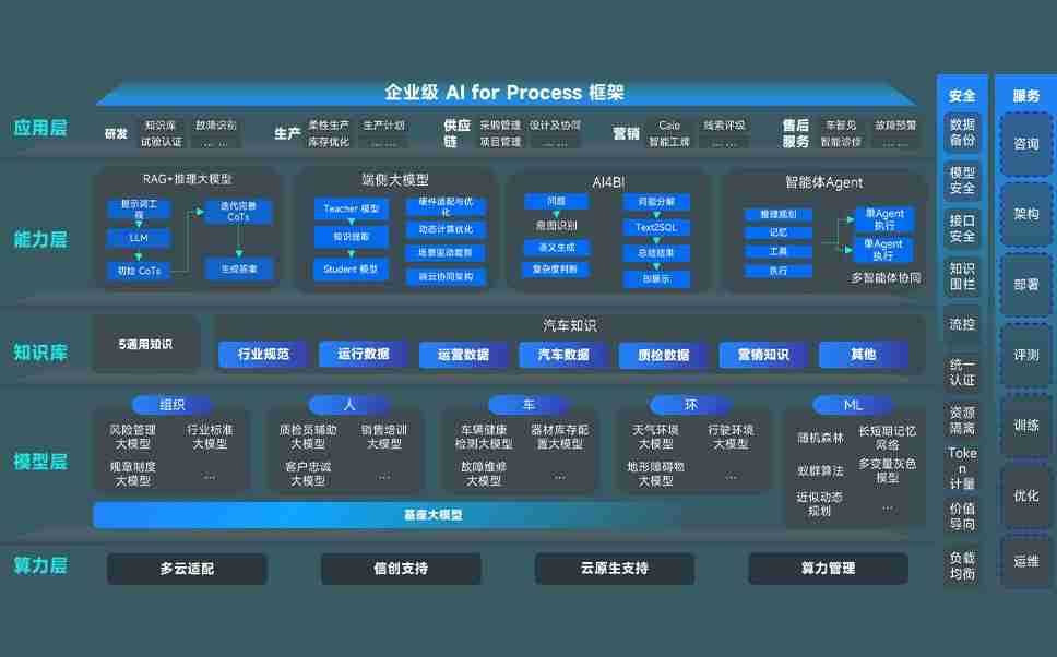 端到端的一站式AI工作空间深度融合了从企业战略规划到日常经营的全流程业务板块,,,定向解决车企内部领域多、、、部门多、、链条长、、、、场景碎片化等难题,,,支持车企快速构建以AI为核心的生产力写作体系,,实现任务执行与AI能力的无缝集成与交互